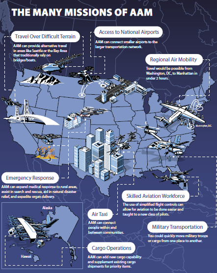 A close review of the two documents reveals some interesting issues that have not been considered by the general discussions found in social media or other forums. Here are some of those noteworthy aspects. It is worth noting these documents survived a change in administration. Given the considerable shift in many of the policies that occurred when the Trump Administration took office, the continuation and culmination of the IWG’s work underscores the gravity of AAM to the future of the United States. The documents highlight the economic impact as well as the need for the US to maintain leadership in this new aviation era.